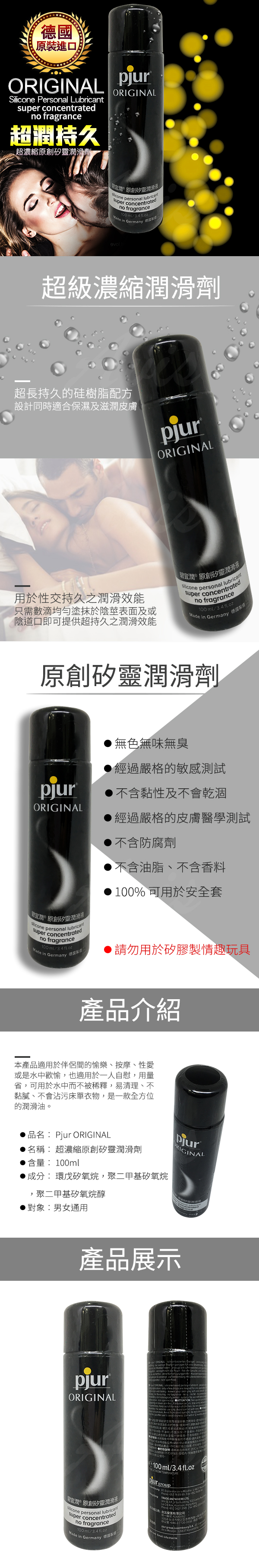 Pjur Original是目前你在市面上見過最頂級的矽性潤滑液。原本Pjur集團在研發時一直不斷的尋找能夠高效的產品,