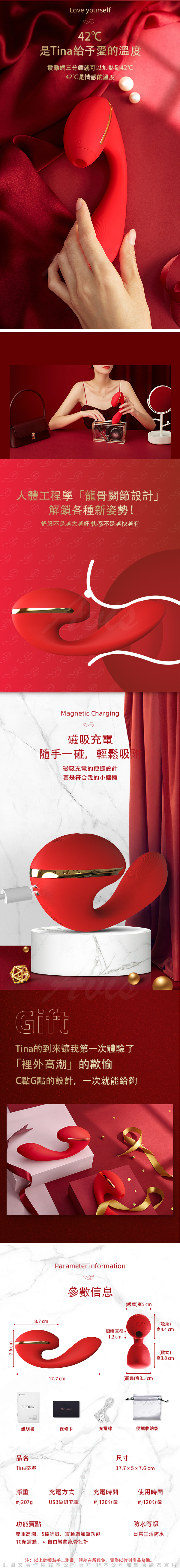 品名:KISS TOY Tina 蒂娜 雙重高潮 智能加溫 吸吮震動 按摩棒
