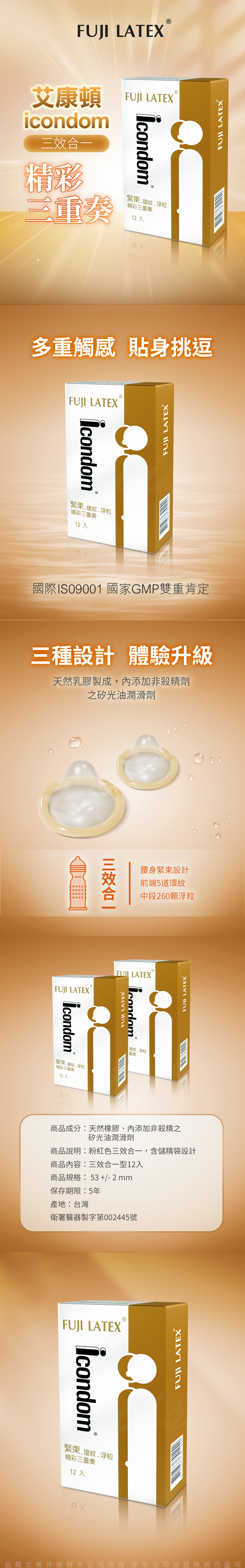 FUJI-NEO|ICONDOM 艾康頓 精采三重奏|衛生套 保險套 12入
