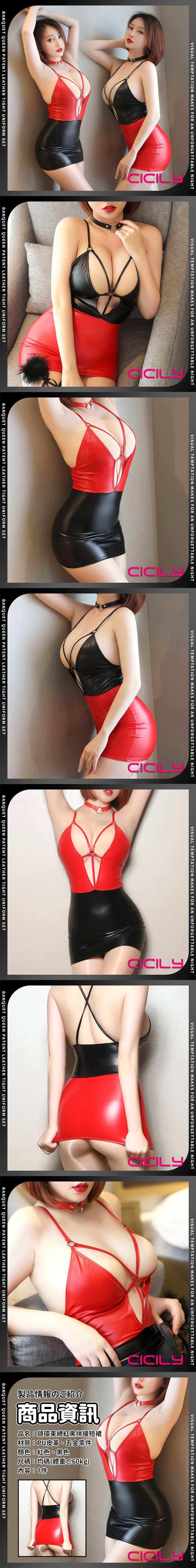 CICILY|上黑下紅撞色超短裙+黑色頸環